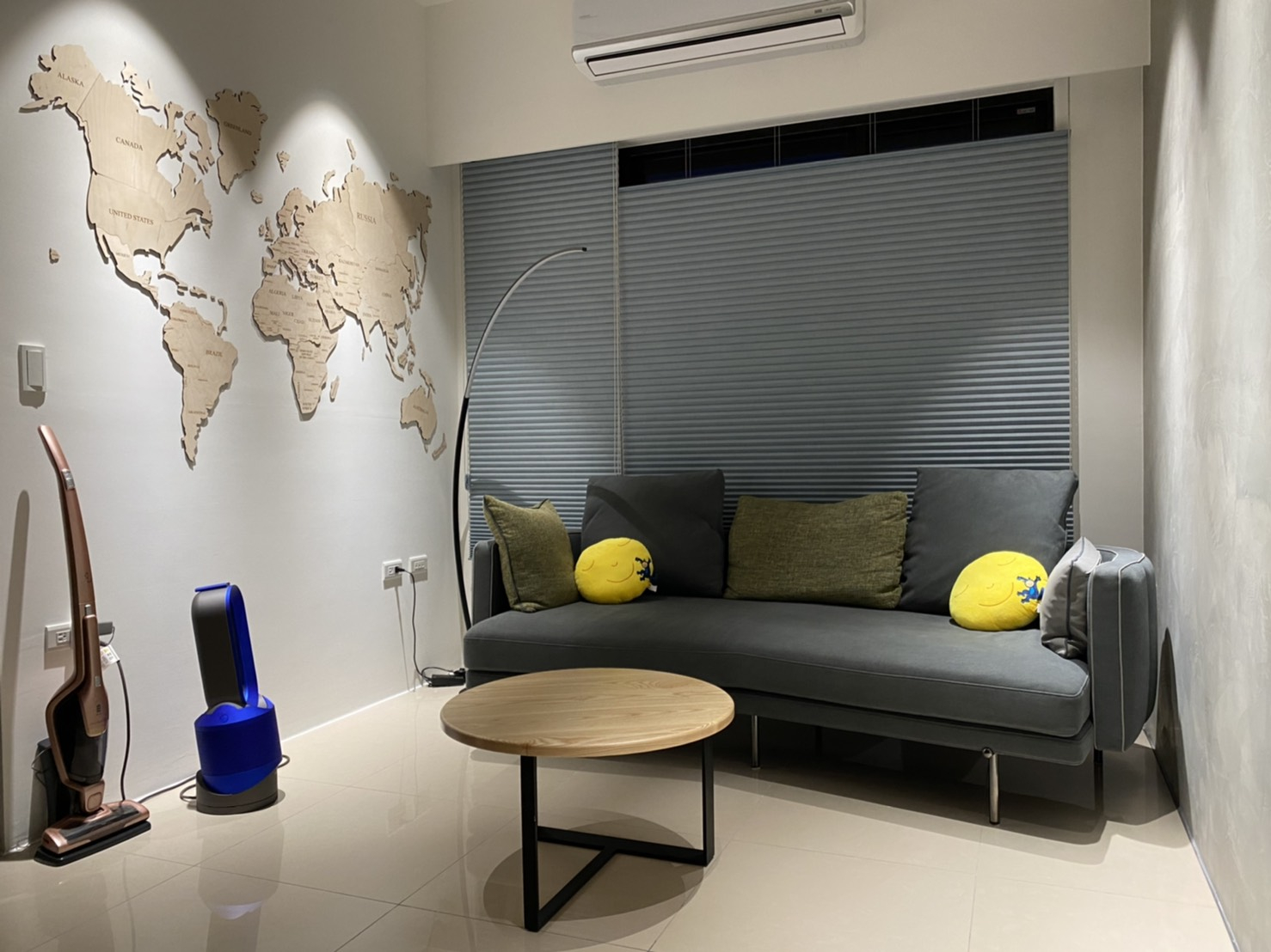 當我們踏入這樣一個以北歐風為主的空間,能看到灰色系牆面、暖色的木作櫃,與鐵件訂製家具以一種冷靜而不失溫暖的色調,為空間營造簡約、質樸自然的氛圍。