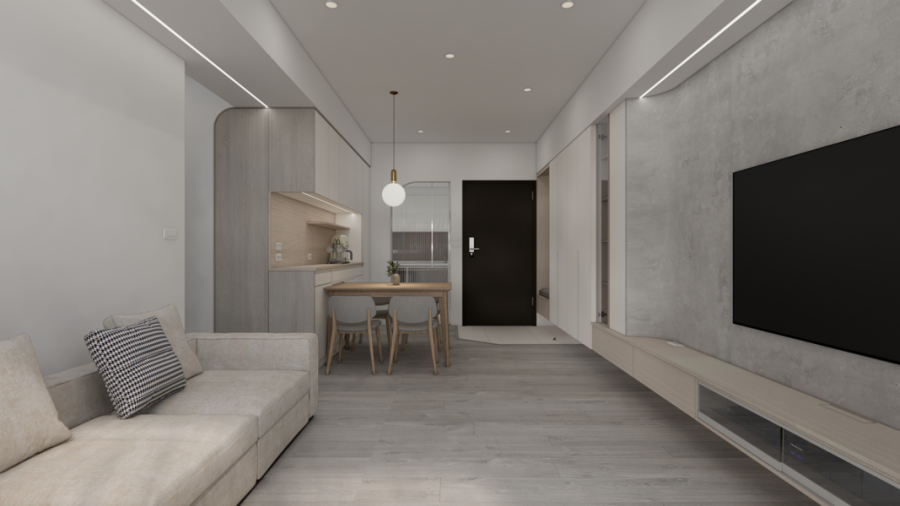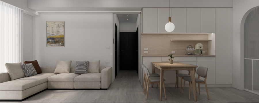 需求:新成屋|大樓 風格:簡約風,混搭風 坪數:22坪 格局:三房兩廳兩衛 屋齡:3年 預算:120萬