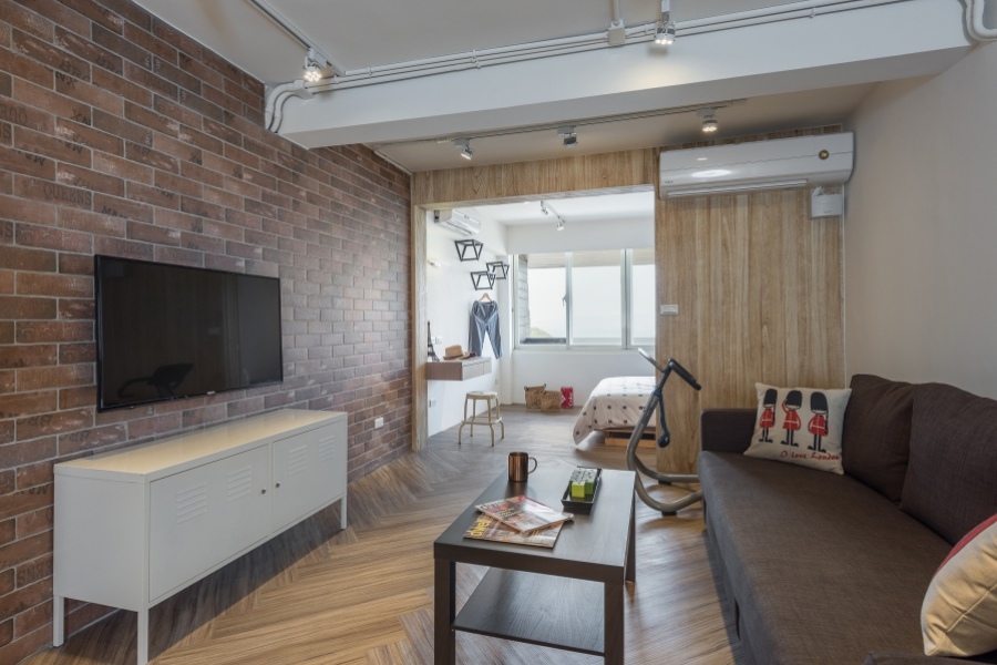 本案位於知名景點九份老街上,整棟房子已達高齡70歲,經過幾次轉手,線路已經老舊且複雜不堪。地下一樓及一、二樓作為店面使用,舊屋翻新的重點放在基礎工程的整修及外觀的整理,而三、四樓作為員工宿舍,是此次設計部分的亮點,風格上業主希望帶點工業風,又可以有點美式溫馨的感覺,讓員工能夠住得舒適。利用有限的預算,把錢花在重點上,即使舊屋翻新的基礎工程所費不貲,還是能達到最棒的效果!美式工業小套房