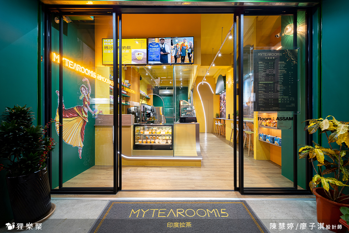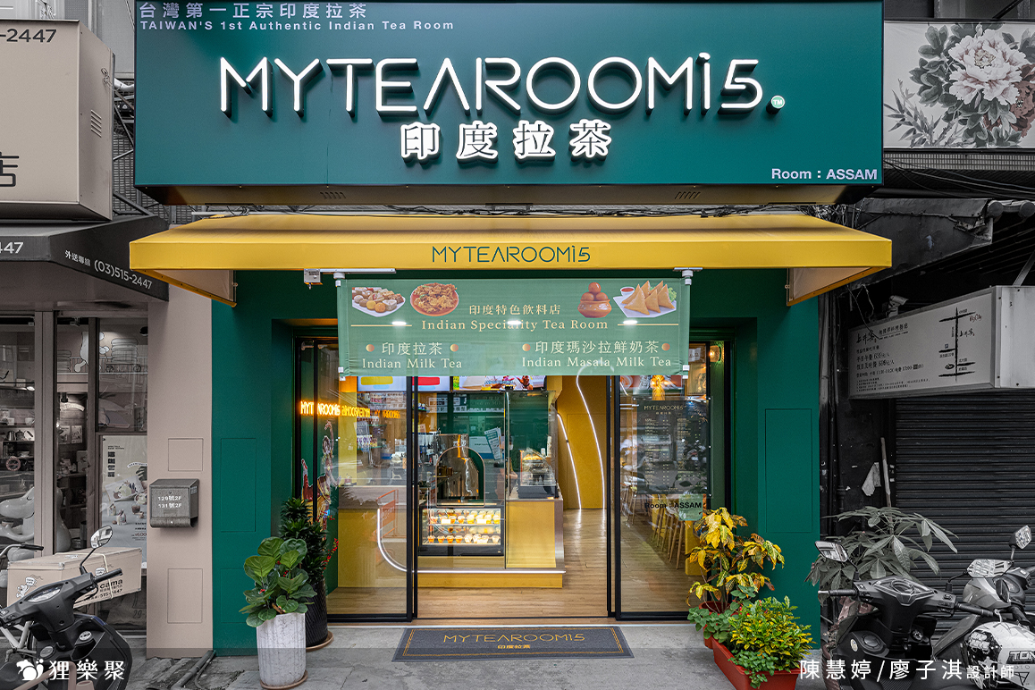 將印度好客、放鬆,充滿歡樂的日常帶給客人,並從中展現家鄉獨特的文化風情,這是老闆希望在店裡呈現出的風格,也是我們設計的重點。所以在視覺第一眼的主色調,我們選擇以印度國旗中的橙、白、綠做為搭配,有著勇氣與無私意涵的橙,還有代表繁榮、信心、生產力的綠為主基底,而象徵真理與和平的白色,就在招牌My Tea Room上呈現,作為畫面中的一大點綴。異國風情拉茶飲料店