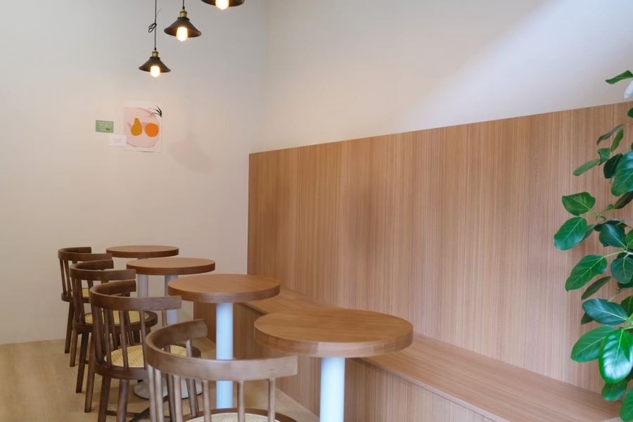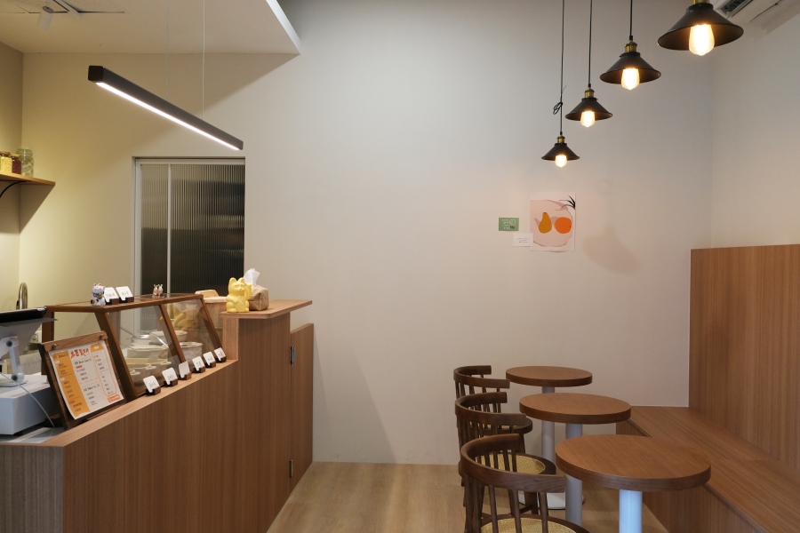 木西製甜所的店主是個年輕的創業團隊,期望能用手做的甜品溫暖每位顧客的心,設計師規劃了大面的玻璃拉門引入充沛採光,以簡約的白牆搭配木材質的桌椅、備料區串聯整體空間,打造出明亮且寬敞的文青風用餐環境,讓到訪的客人都能像在家一樣舒適自在,享受美食所帶來的療癒氛圍。簡單且溫暖的甜品小店