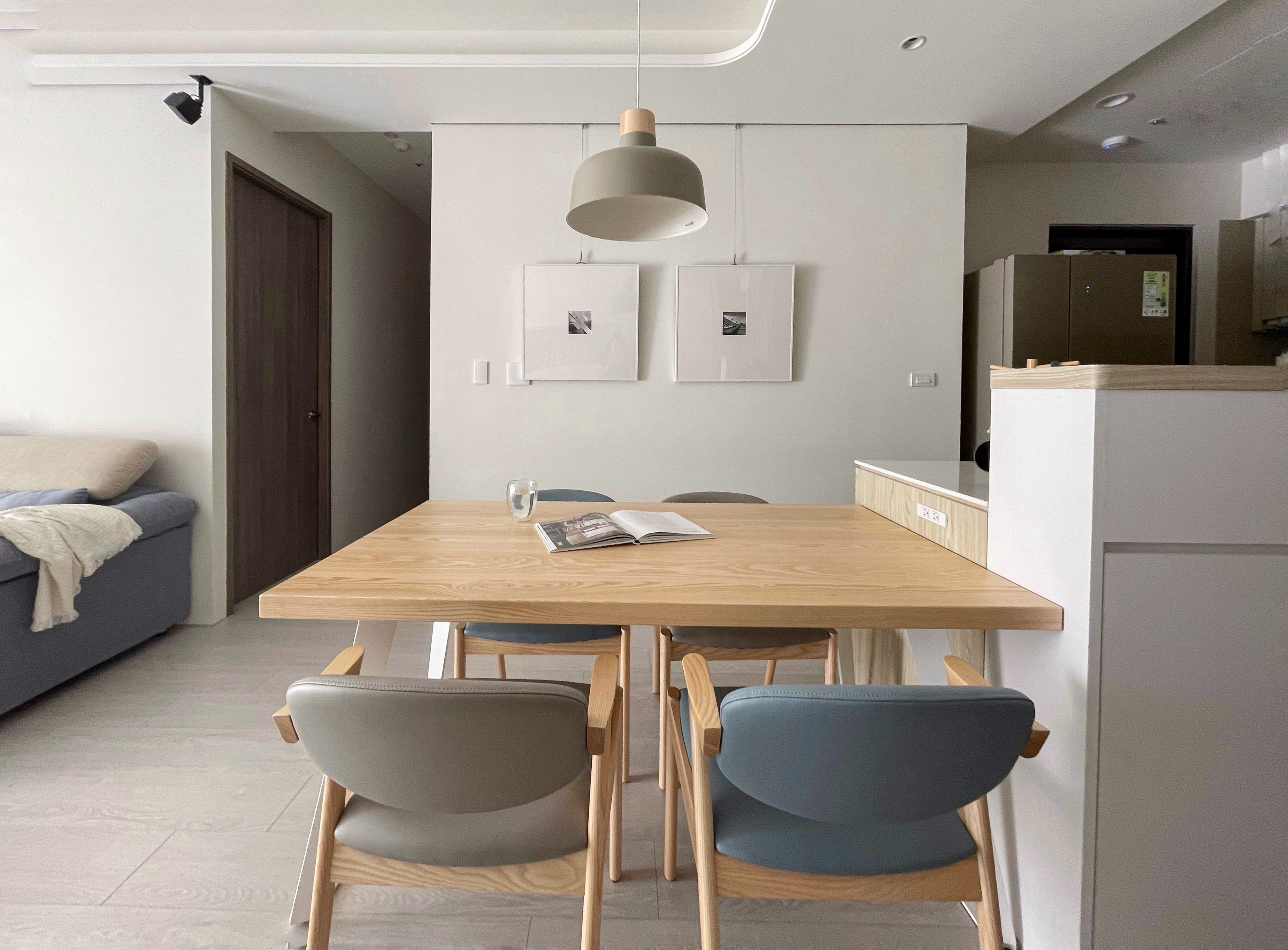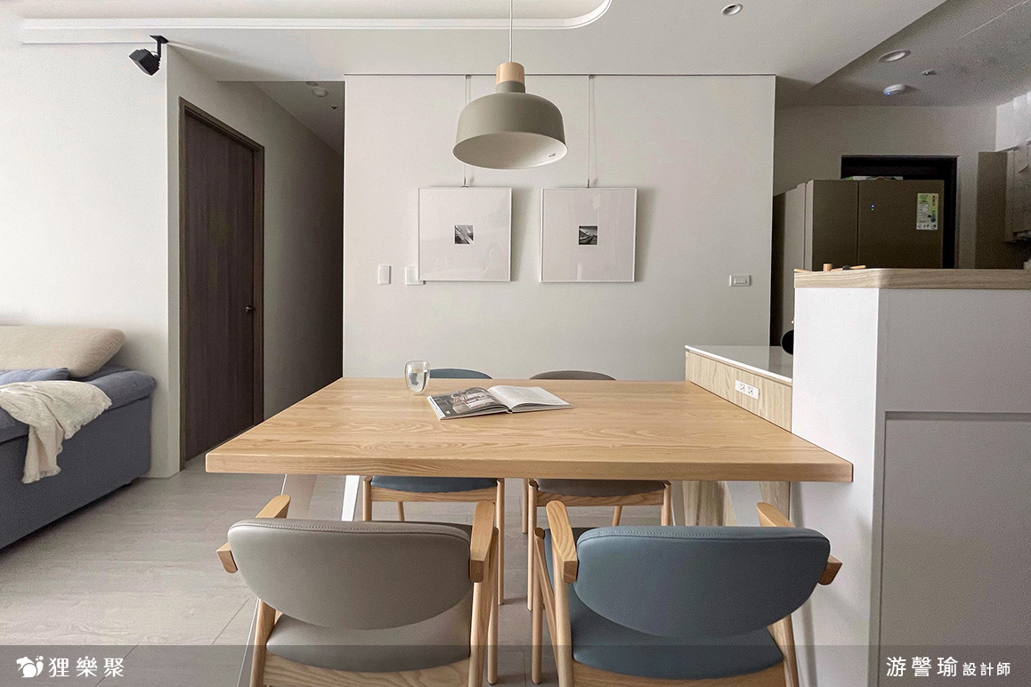 餐桌椅緊鄰開放式中島旁,除了可以做為不同區域的軟性劃分,在料理過程中也能化作臨時備餐檯使用。