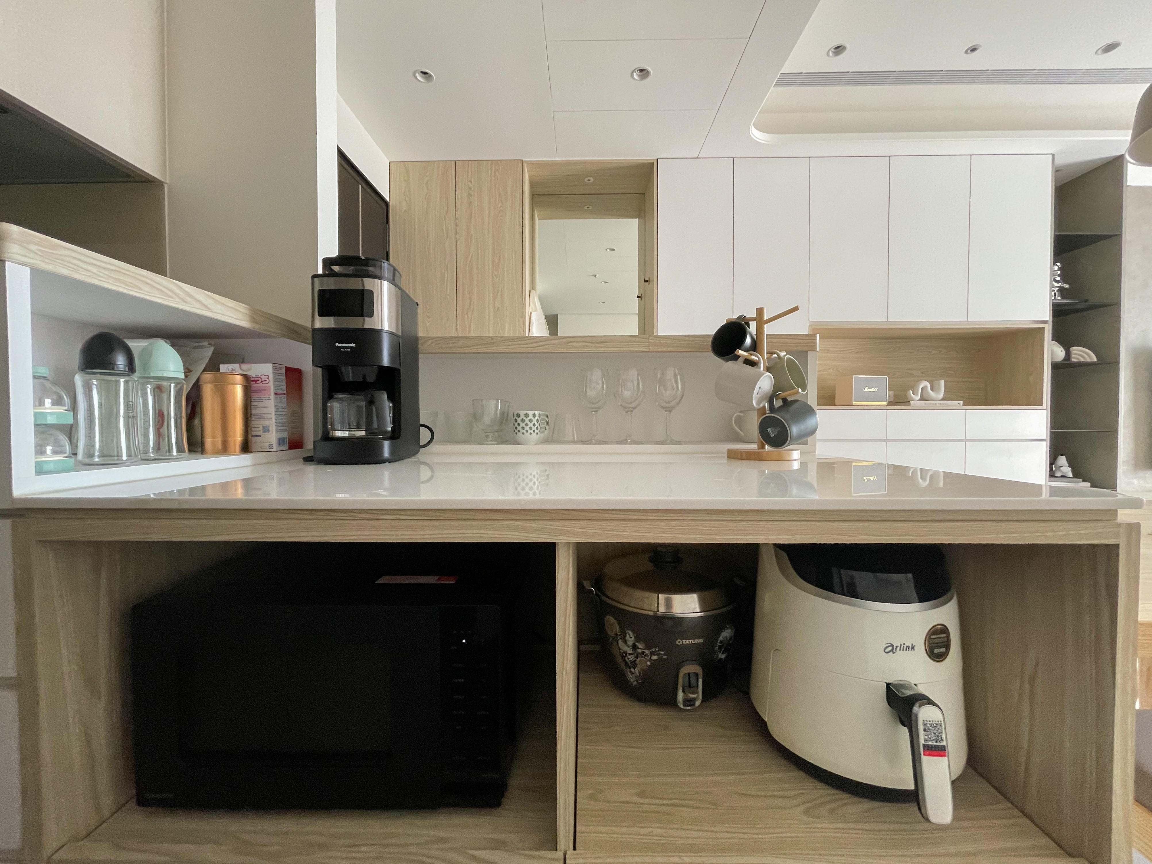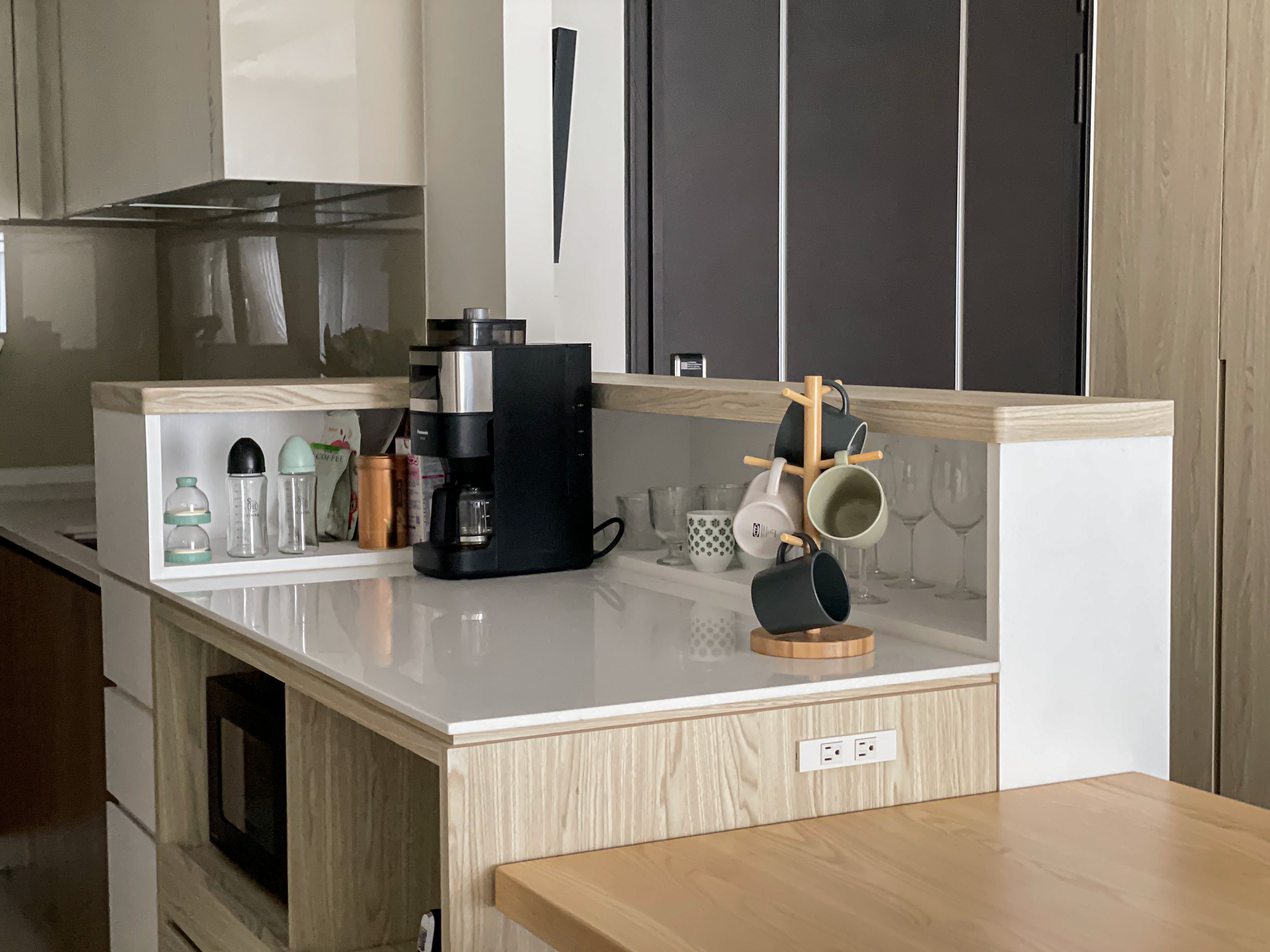 ▲ 中島檯面上也設置了收納空間,不會一眼看去十分雜亂