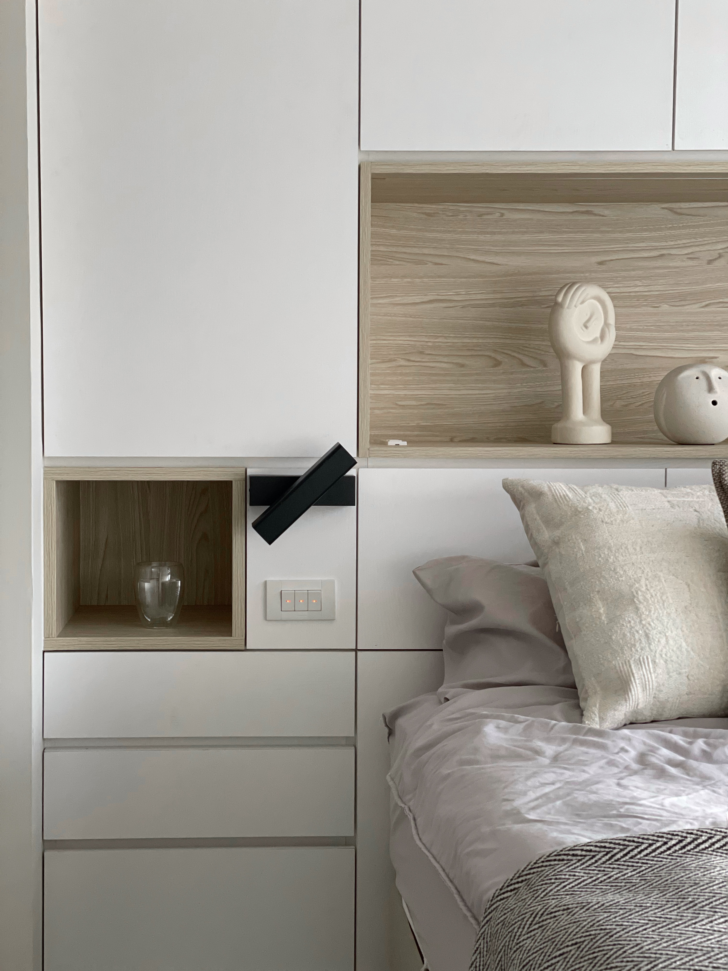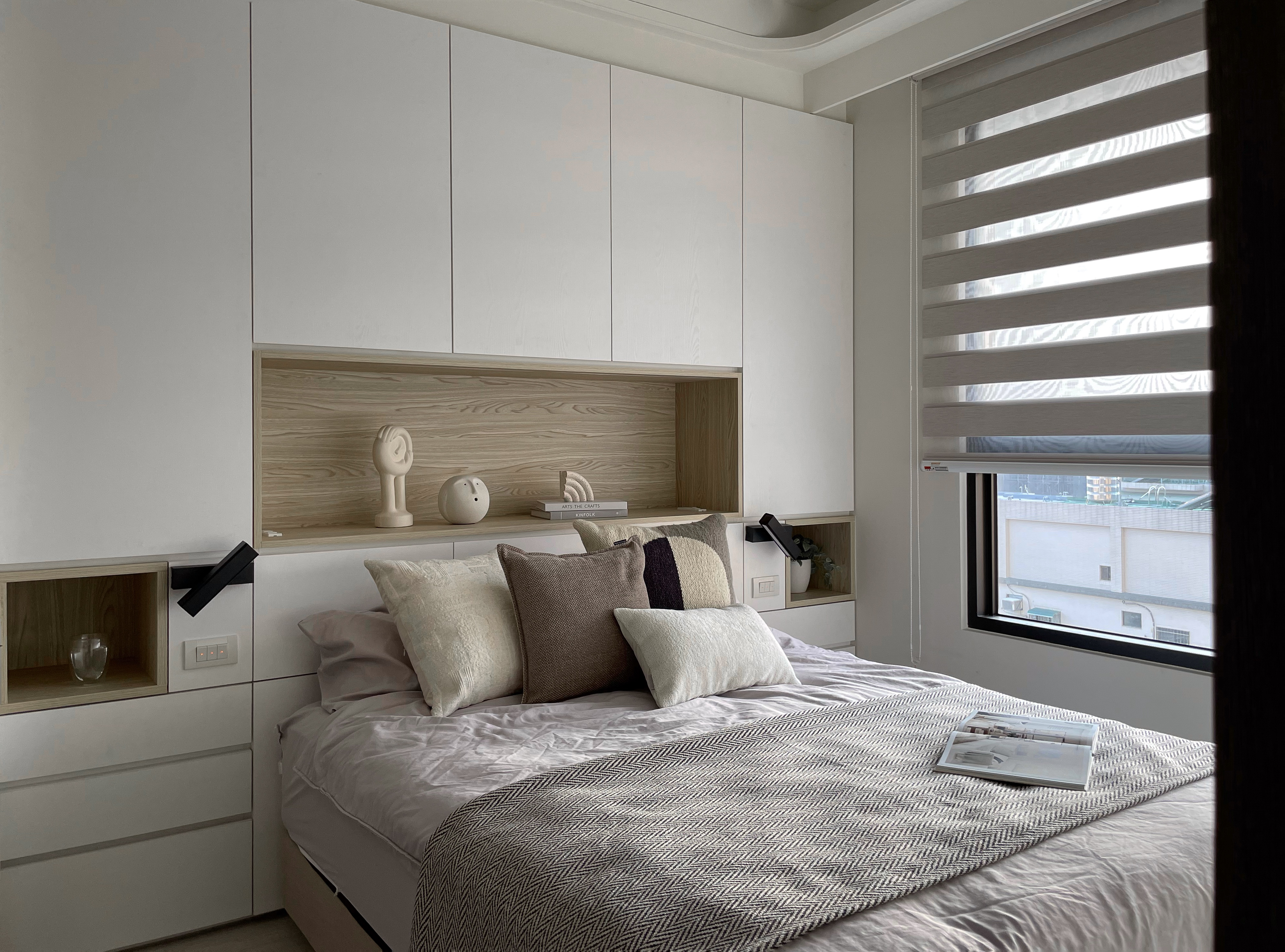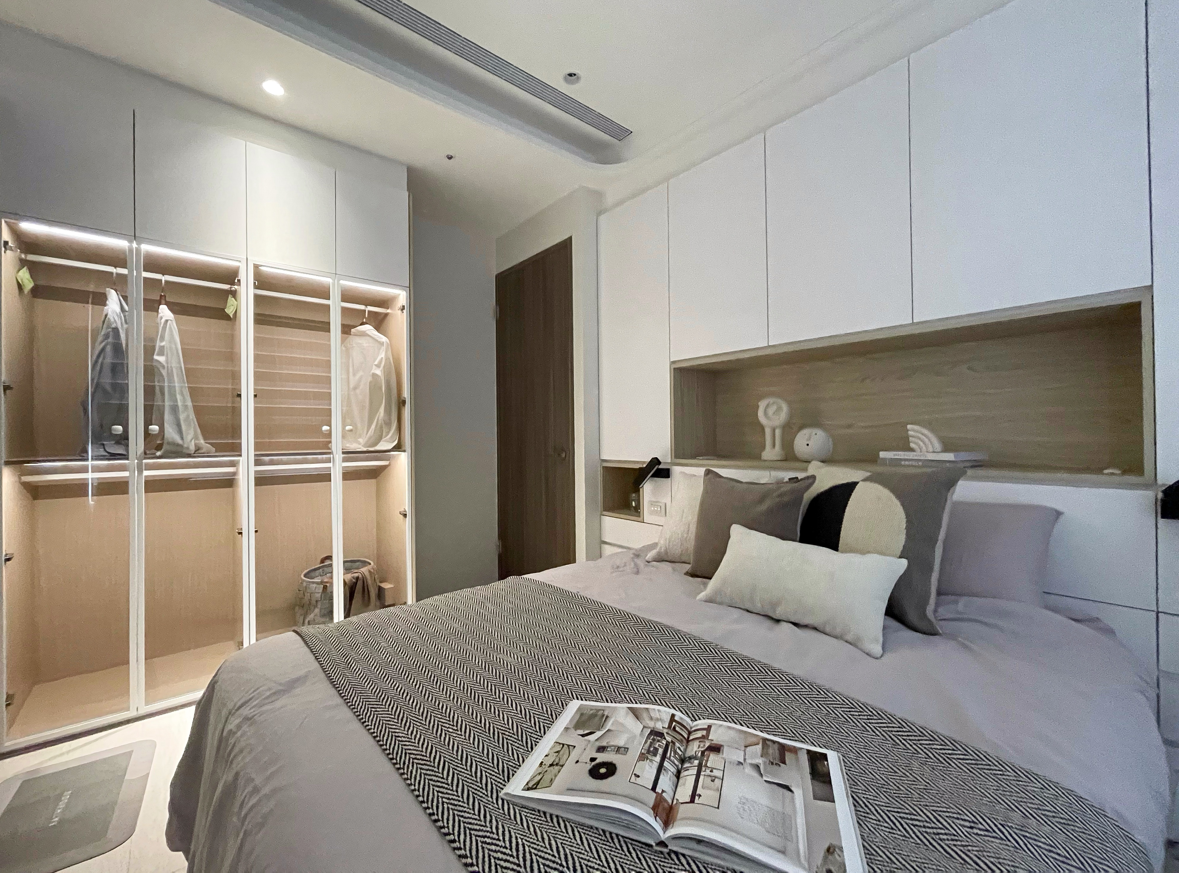 ▲ 床頭設計規劃床背櫃,換季衣物可以收納其中