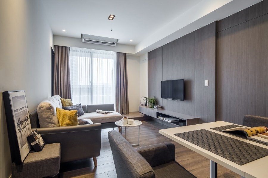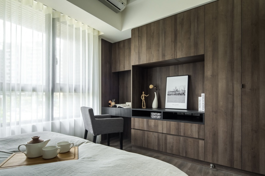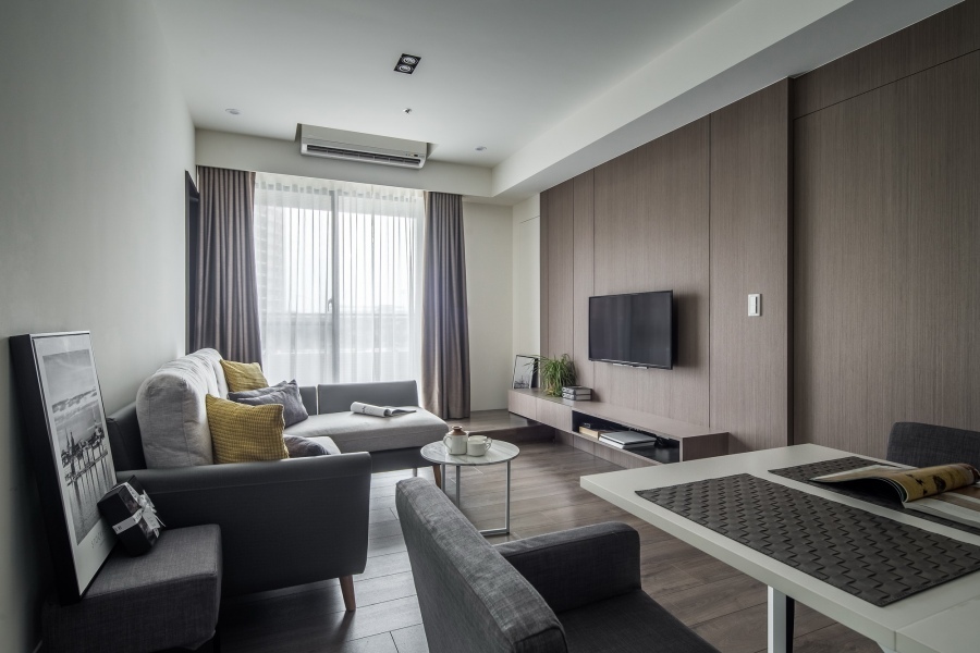 屋主喜好俐落大方的現代簡約風,平時只有兩人居住,以兩人的生活習慣去做規劃,而業主時不時會有客人來訪,有設置客房的需求。在空間配色上,主要運用灰色和原木色做搭配,讓屋內不會顯得單調,反而多點穩重感,沉靜的氣息和屋主的氣質相似,屋如其人,打造專屬於業主獨一無二的家。木質調的家