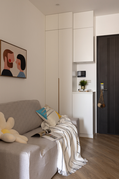 一室一廳格局,最需要的是讓陽光、空氣和人,都可以擁有自由穿梭的動線,同時考量收納空間。淳居不僅滿足上述需求,更在空間中給予不同線條層次,在簡約樸實與時髦洗鍊之間,取得絕佳平衡,就像是一處座落在東京中目黑的質感小居。視覺魔法,幾何藝術創造空間層次