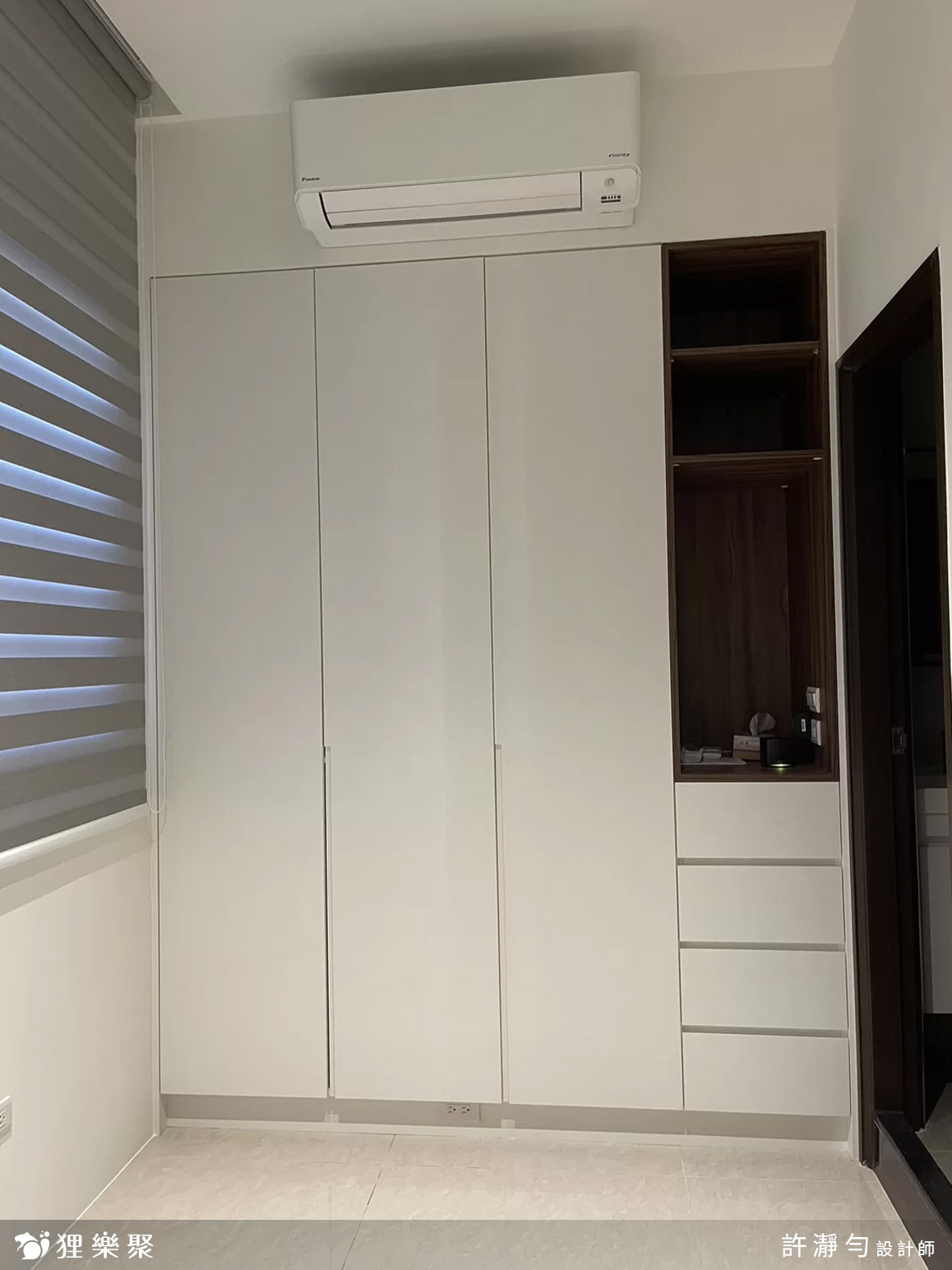 ▲白色衣櫃內藏旋轉衣架更省空間