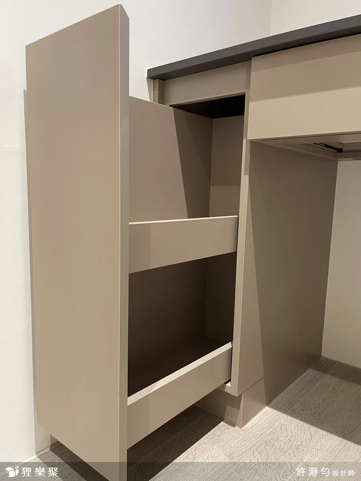 ▲ 餐邊櫃分層規劃,可收納海量的餐具碗盤&小型廚電
