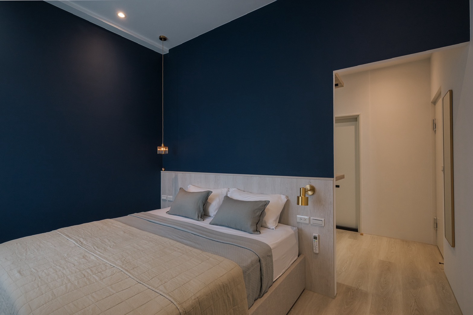 ▲ 主臥深藍色牆面賦予空間優雅氛圍