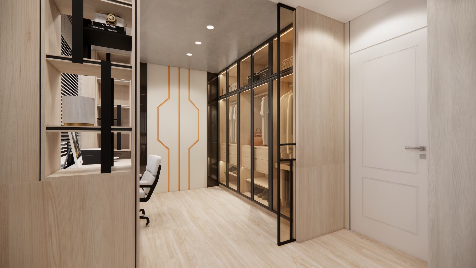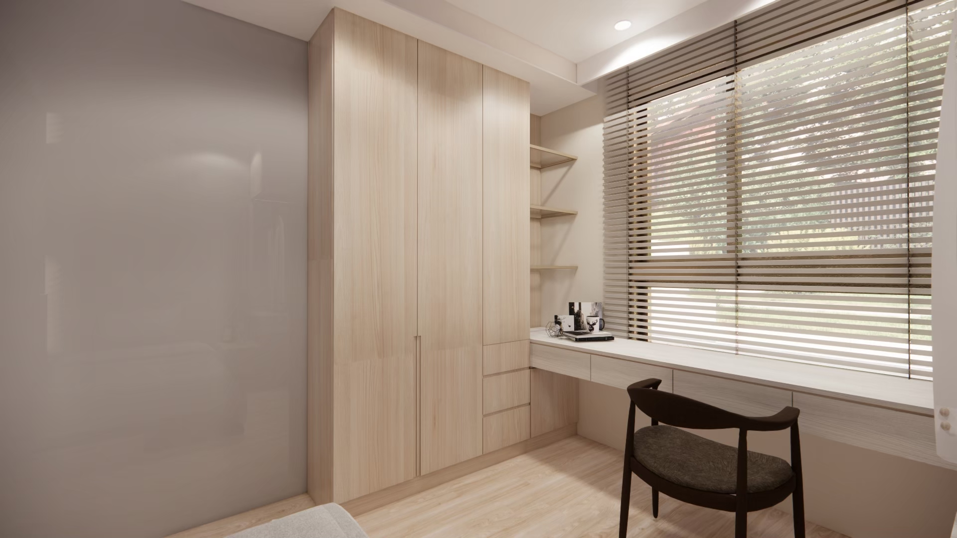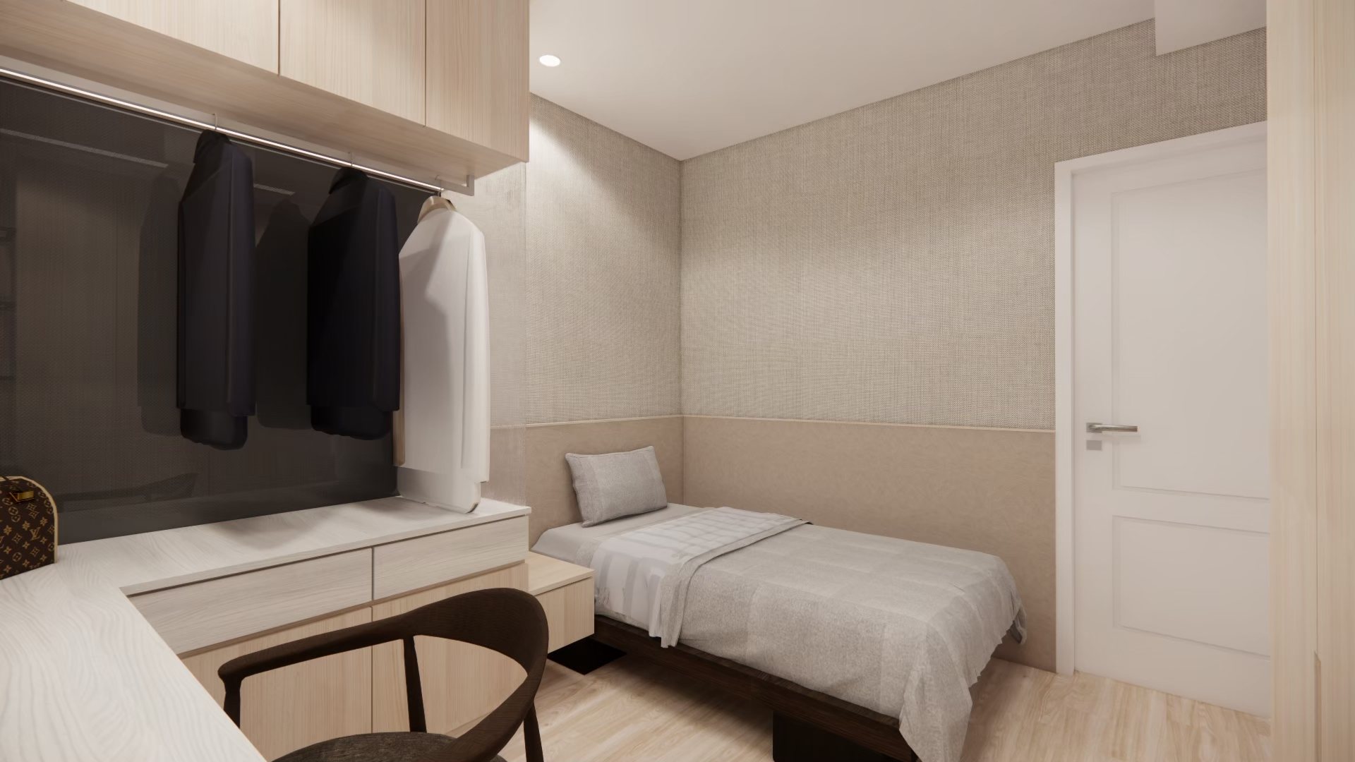 設計理念:屋主希望空間簡單明亮、風格俐落,因此整體以淺色系為主,搭配線條感與光影層次強化視覺效果。