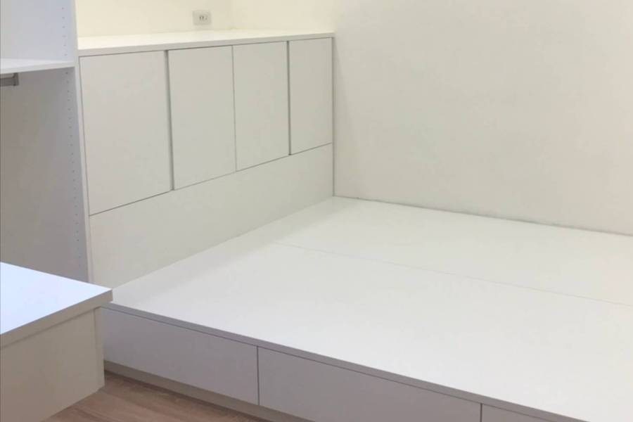 ◆臥室裡巧妙配合房屋樑位的限制、並滿足每個人的收納需求,在寸土寸金的台北市創造出極致運用與舒適的宜居空間。