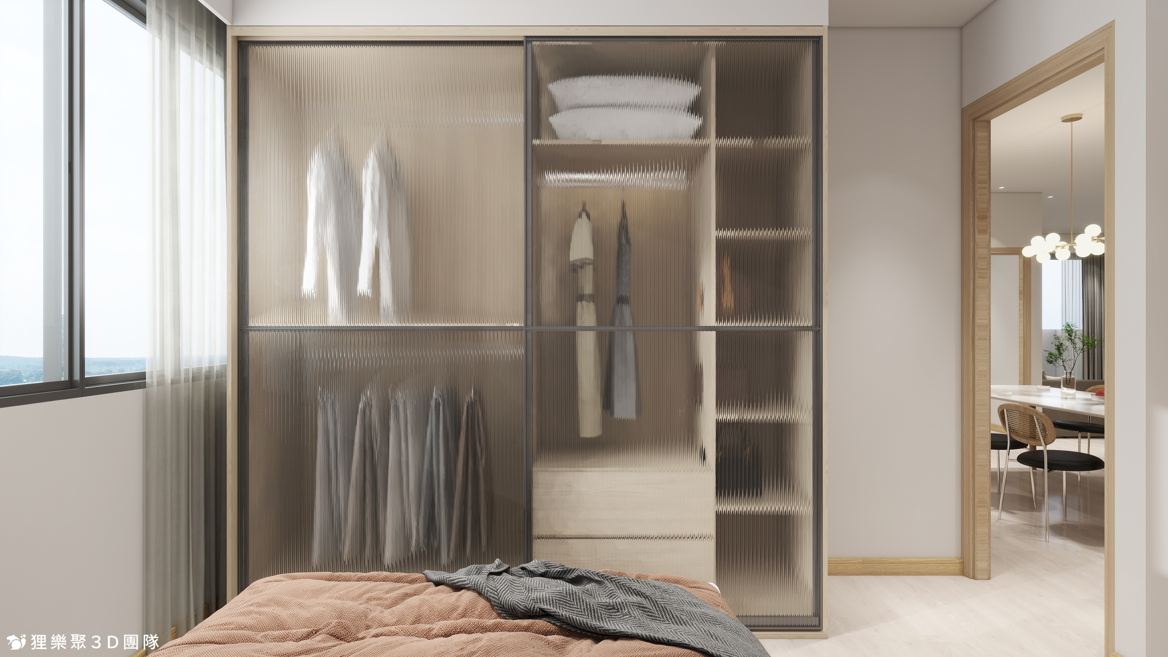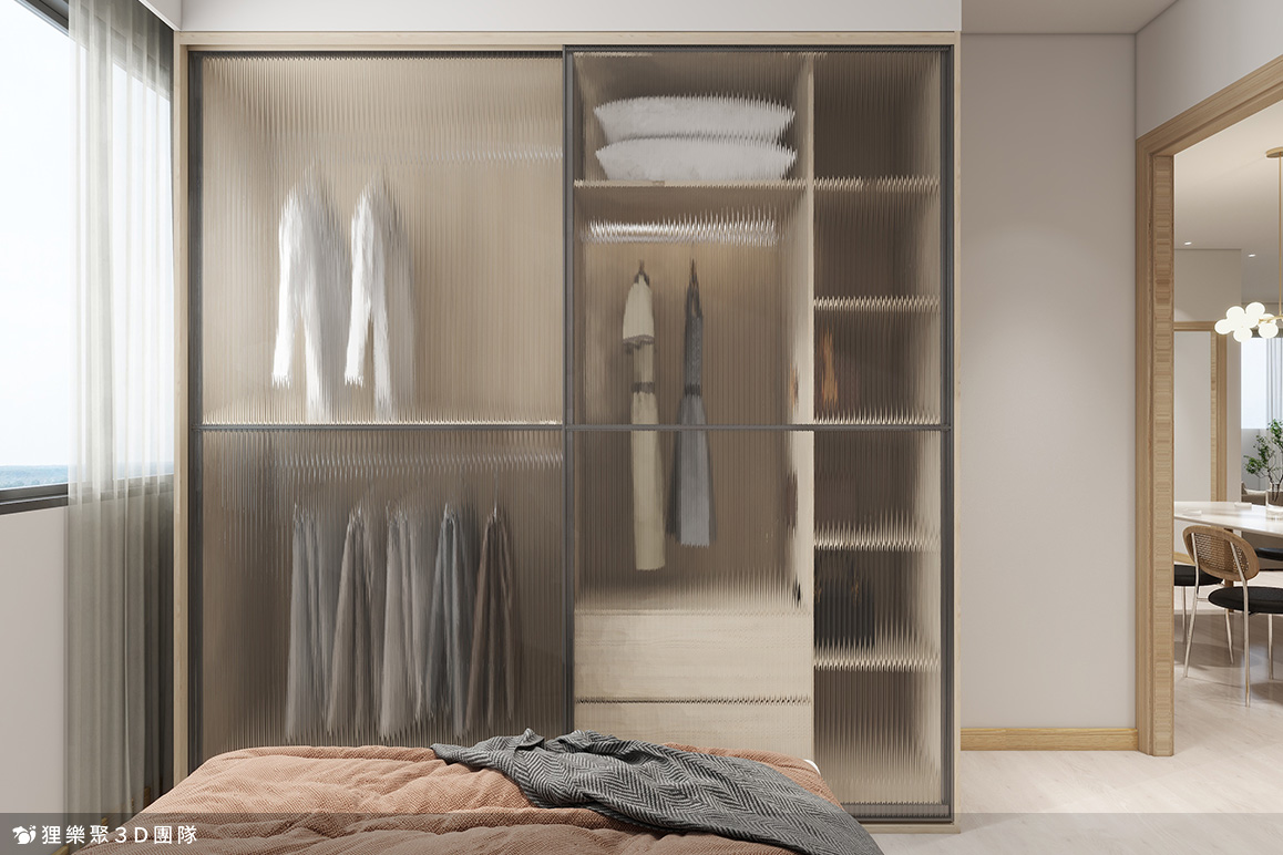 ▲ 與主臥同款玻璃拉門,衣物好找好拿
