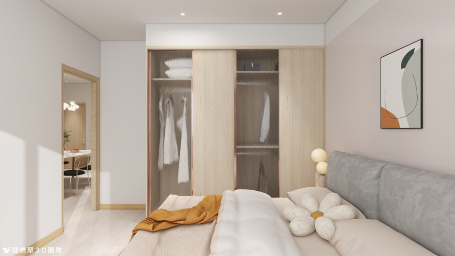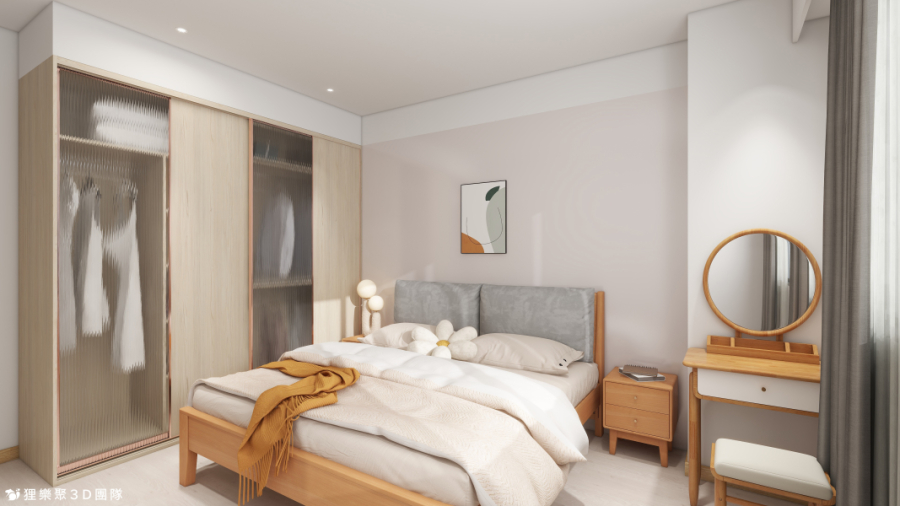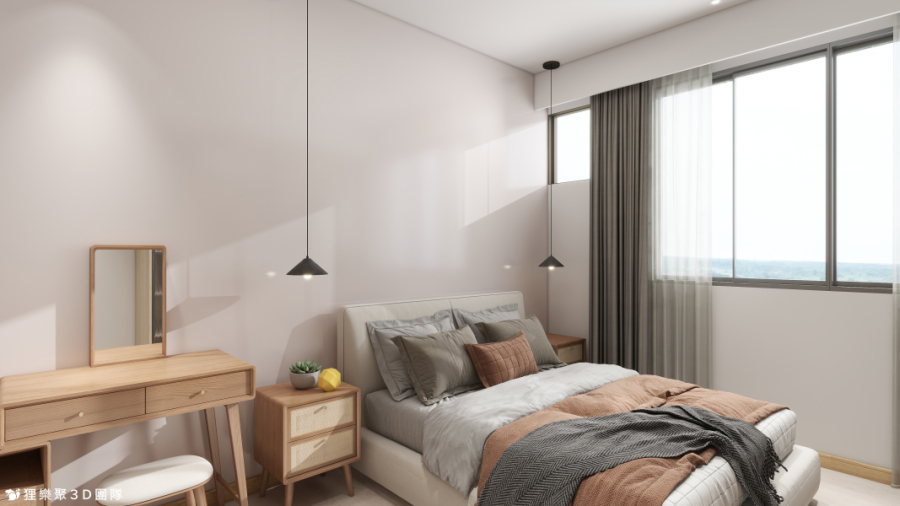 ▲ 柔和的臥室色系搭配營造舒適的睡眠氛圍