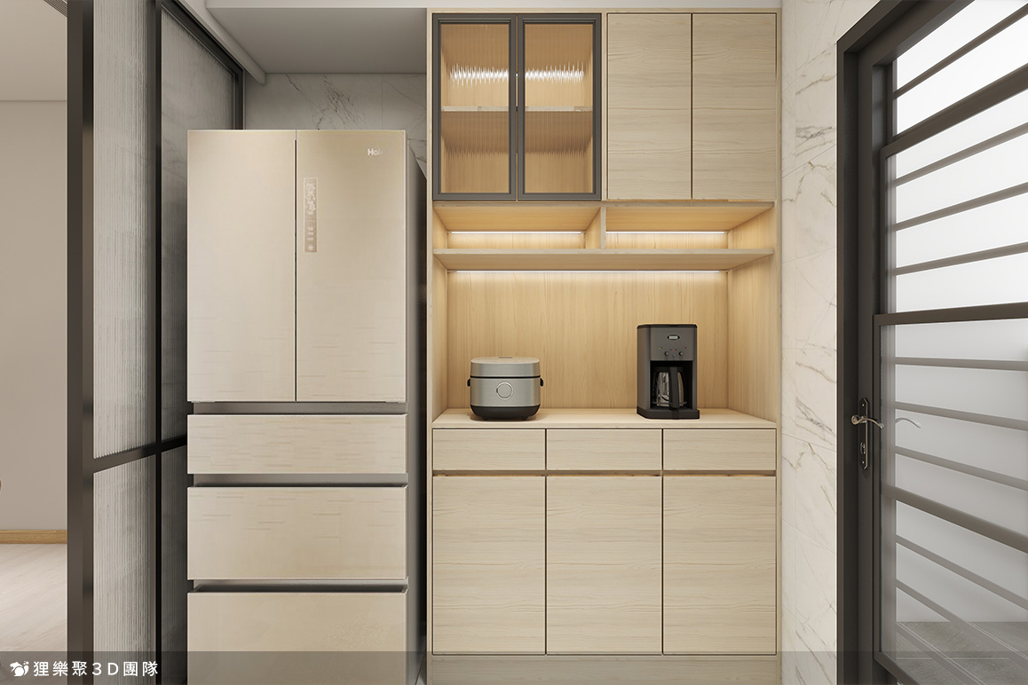 ▲廚房隔出大型電器空間,設置收納櫃將不常用的小家電收藏其中預約諮詢