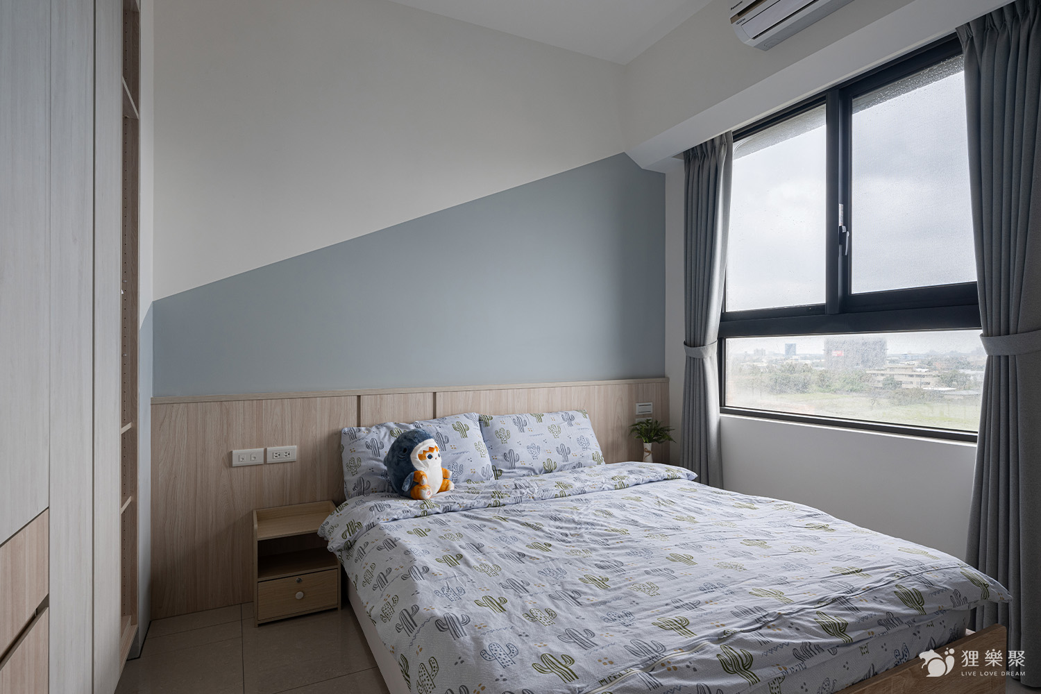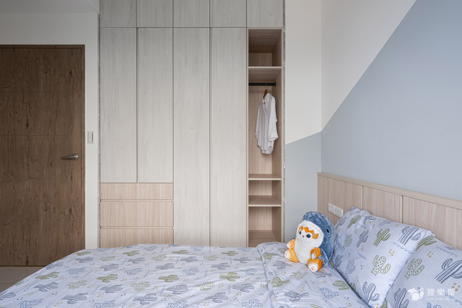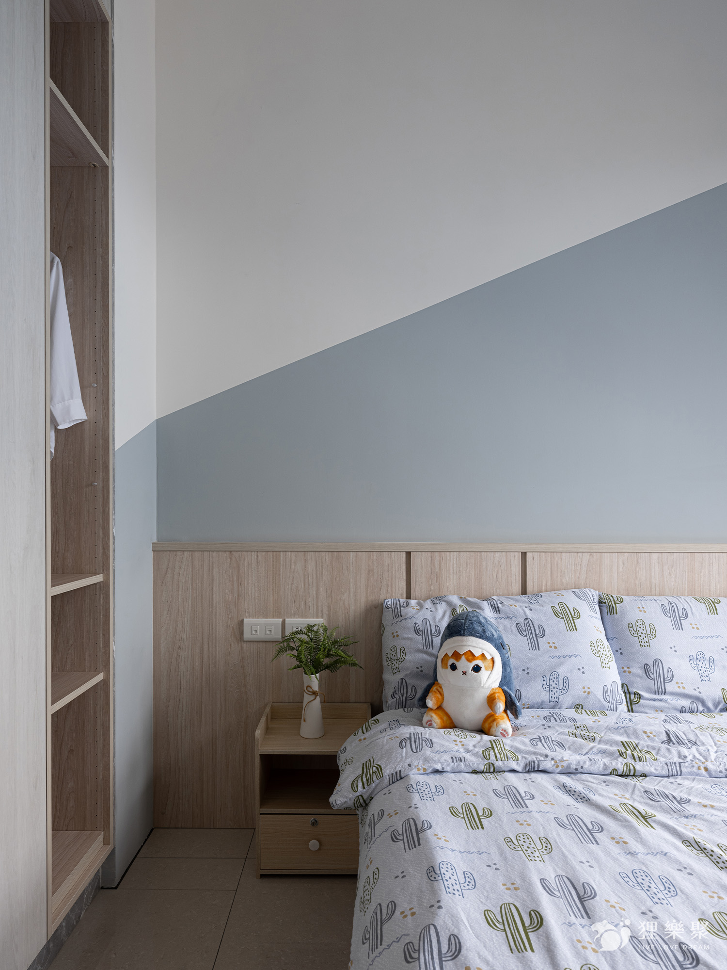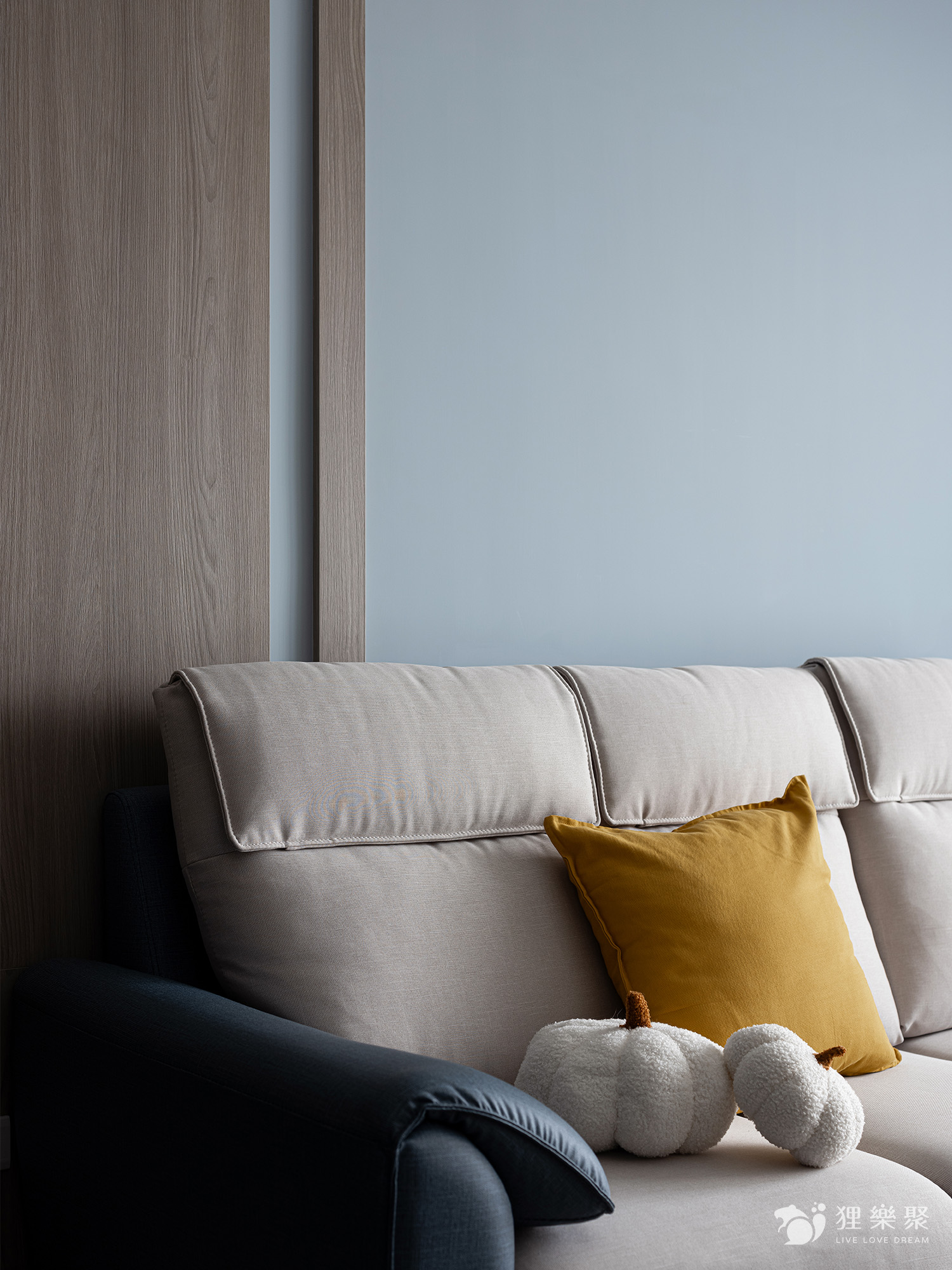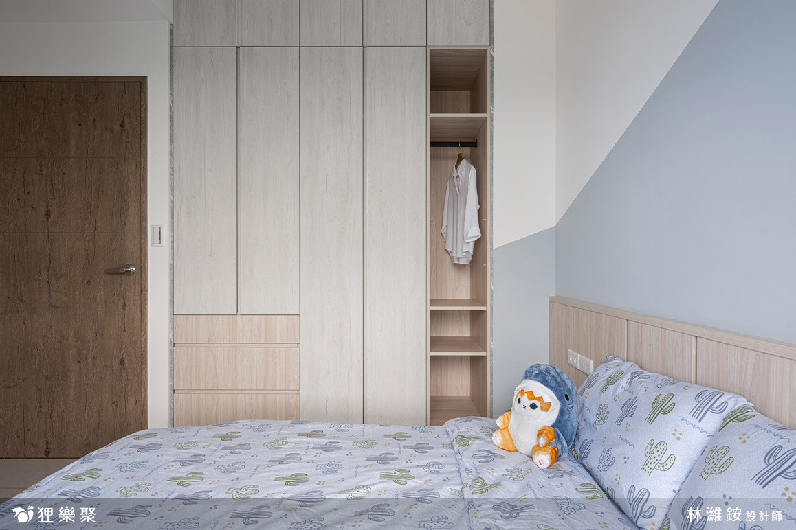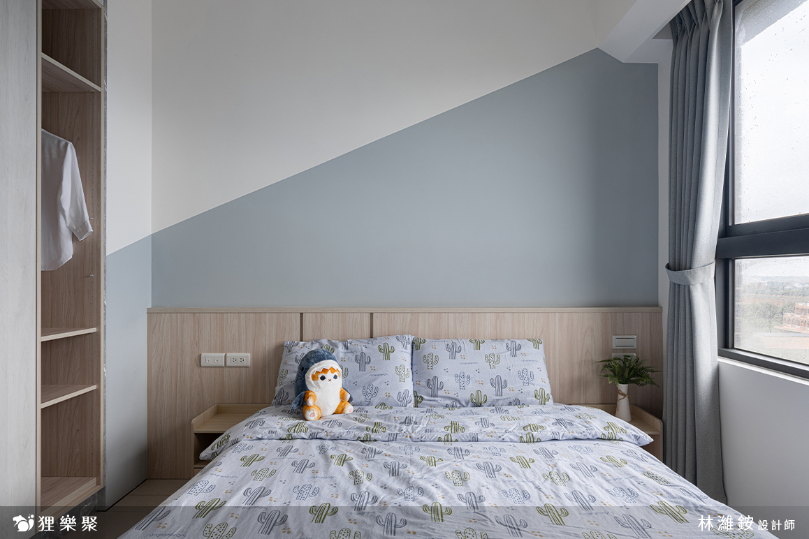 ▲ 莫蘭迪藍、木紋搭配,圍塑出柔和的空間感