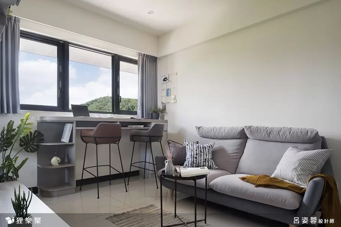 這間位於山邊的新成屋共有三房兩廳兩衛,雖然坪數不算大,但由於業主的物品並不多,只要設置適量的收納空間,並利用櫃體、建材、燈光和家具在開放式的空間界定各區域的範圍,加上流暢的行走動線,就能打造出一體成形、層次分明且質感大方的清爽簡約設計。配合屋主的喜好及特質,選擇以簡約風作為房子的風格調性,俐落的設計中帶有居家空間的溫馨,融合出獨一無二的新滋味。為生活留白