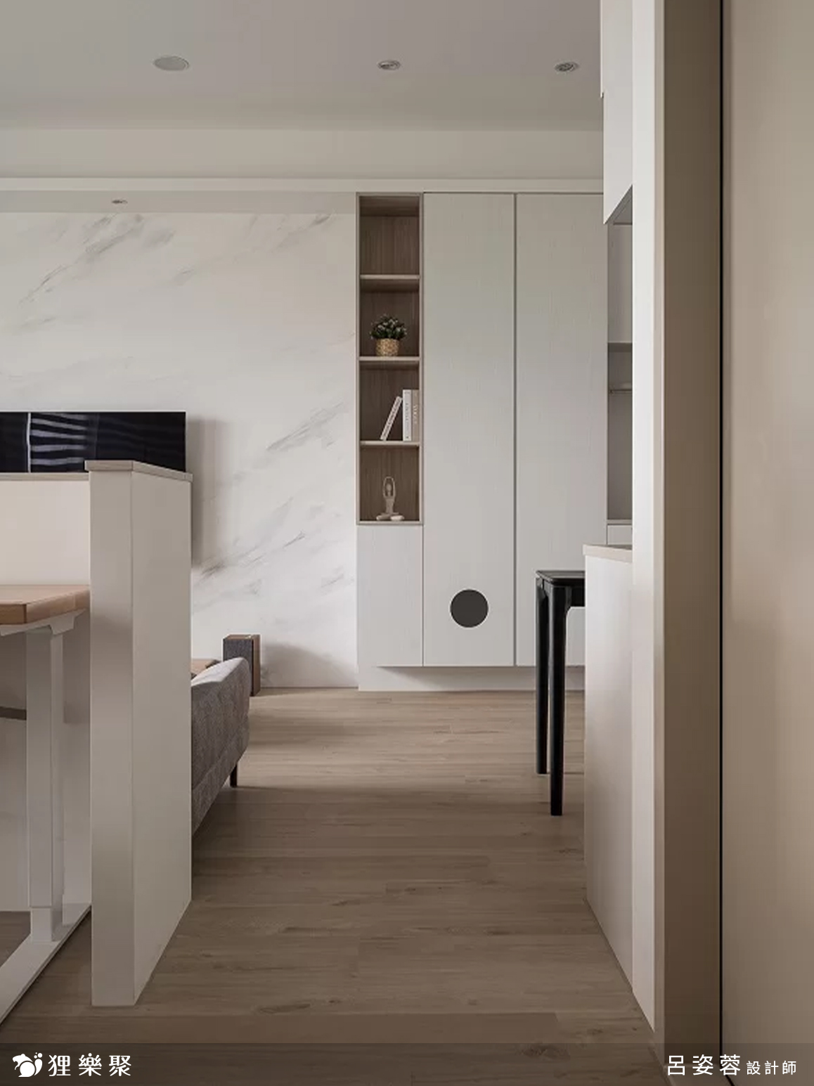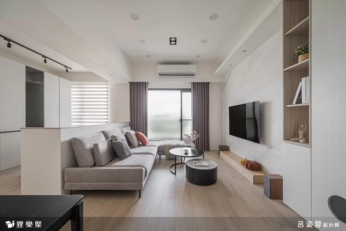 這個奶茶色室內設計案例規劃了客廳、餐廳、書房和主臥,整體線條仍呈現出現代簡約風設計概念,將剛硬的黑色、冷冽的灰色替換為溫暖的淺木紋,帶來簡約又清新的氛圍,電視牆選用白色的仿大理石板材,減少了和白色系櫃子之間的分界感,更減輕視覺的負擔,且在櫃體設計上保留了適當的留白,讓空間擁有呼吸的空間,是一個相當舒適的奶茶色裝潢。延伸閱讀:<< 裝潢該找統包或室內設計師?先看看差異再選擇! >>